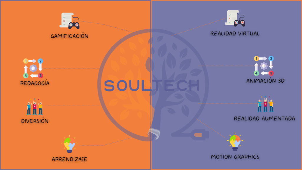 Soultech ofrece respuestas a los problemas de la vida diaria gracias a la pedagogía y la tecnología. Elaboramos proyectos que combinan aprendizaje y recursos tecnológicos que ayudan a desarrollar sus servicios y productos